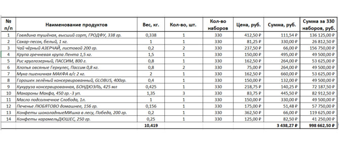 Назначение платежа: Поддержка социального проекта – “Продуктовые наборы”